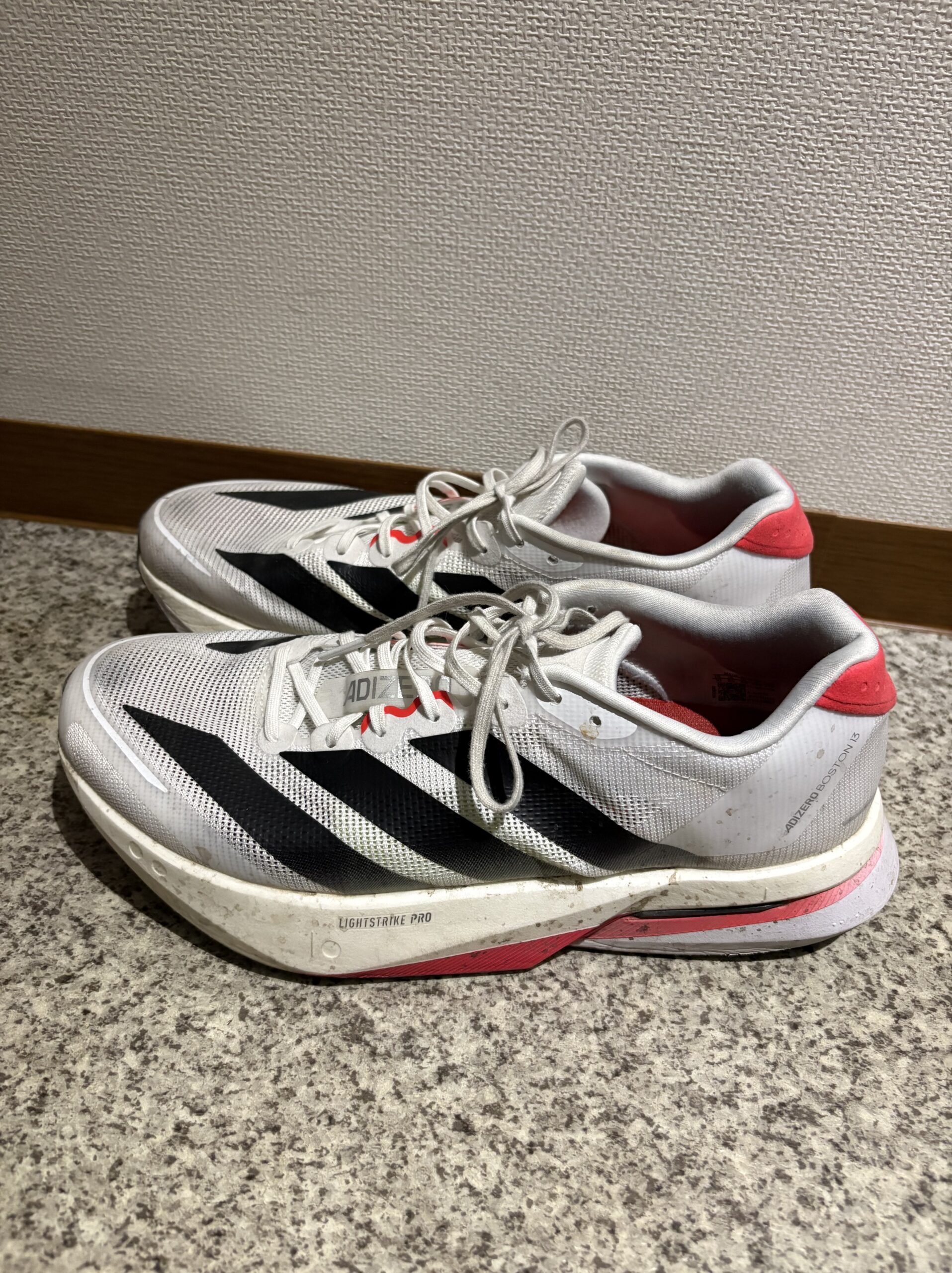 現在は昨年11月に購入したアディダス アディゼロボストン13の白色を主に使用しています。