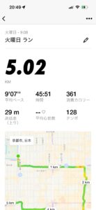 このコースで大体5KMで所要時間は45分のランニングでした。