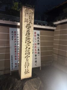 こちらは菅原道真公がお生まれになった地だそうですね。ここはまだ中に入ったことがないので、日中の開いているときに訪れてみたいです。