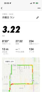 帰りは下長者町通りを西に向かって進み、堀川通りを南下して、そのまま二条城まで到着です。この日は3.22KMで所要時間は27分の少し軽めのランニングでした。