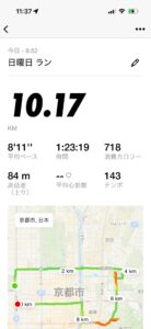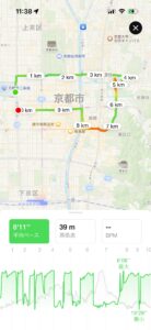 八坂神社を出て、四条通から三条通りに移って、三条堀川の交差点で本日の寺社仏閣巡りのランニングは終了となりました。